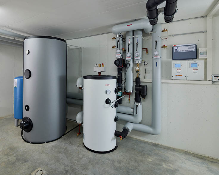 Die Vorlauf- und Rücklaufleitungen der Wärmepumpen werden auf dem Dach gebündelt und zu je einer Steigzone geführt, welche die Anlage mit dem Technikraum im Untergeschoss verbindet. Eine hochwertige Chromstahlbox sowie die fachmännische Abdichtung aller Details durch den Dachdecker gewährleisten die Dichtigkeit dieser Lösung. «Unser Konzept ist bewusst sehr einfach gehalten. Dadurch können wir es für viele verschiedene Objekte anwenden», berichtet Kurt Lüchinger. Damit Service- oder Reparatureinsätze schnell ausgeführt werden können, sind die Dachaufbauten durch eine normale Luke zugänglich. Dies erleichtert die Arbeit für die Techniker ebenso wie für die Verwaltung und die Bewohnerinnen, und zwar bei Miet- ebenso wie bei Eigentumswohnungen.