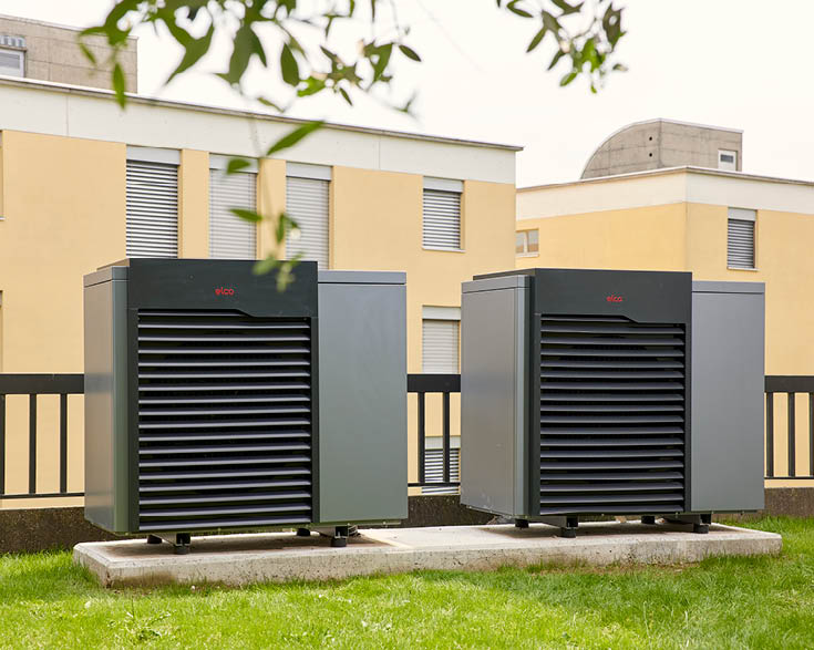 AEROTOP® SX20 mit zwei Luft-Wasser-Wärmepumpen AEROTOP® SX (Leistung je 9,7 kW) für Wärmeerzeugung und Warmwasser