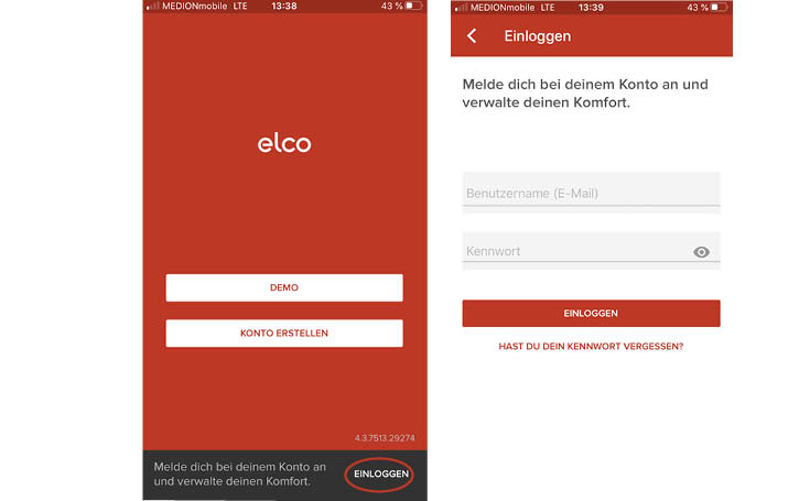 Öffnen Sie die Remocon NET-App auf Ihrem Smartphone und melden Sie sich mit Ihren Login-Daten an