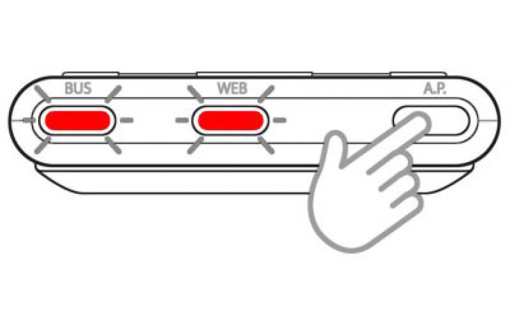 „AP-Taste“ 20 Sekunden drücken und warten bis die WEB sowie BUS LED abwechselnd rot blinken