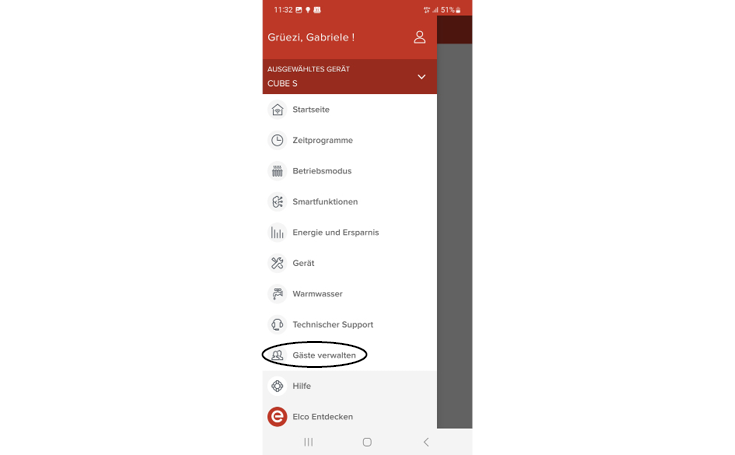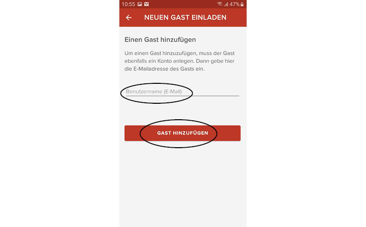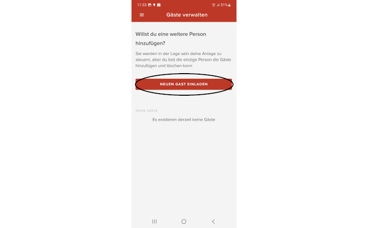 Der Hauptbenutzer kann weitere Benutzer als Gäste zur Verwaltung seines Gerätes einladen. Dank dieser Funktion können alle Familienmitglieder die Heizung über ihre Telefone verwalten, ohne ihre Anmeldeinformationen mit anderen zu teilen.