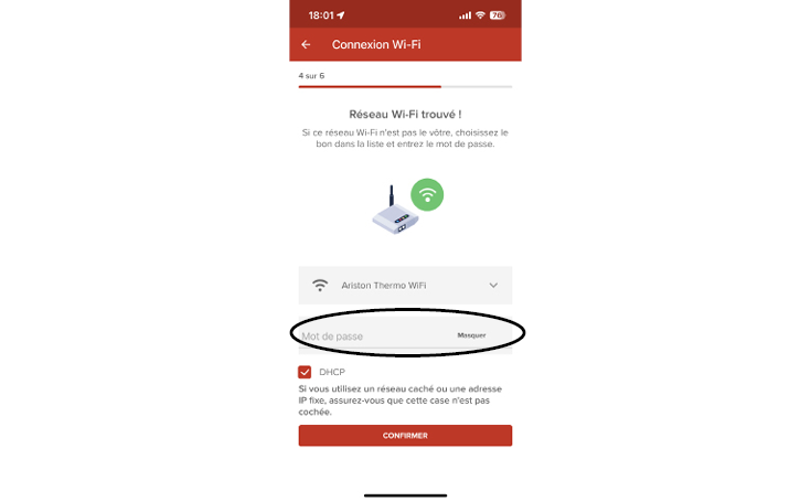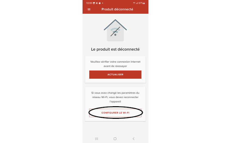 Ouvrez l’app REMOCON NET sur votre smartphone. Cliquez sur RECONFIGURER LE WI-FI