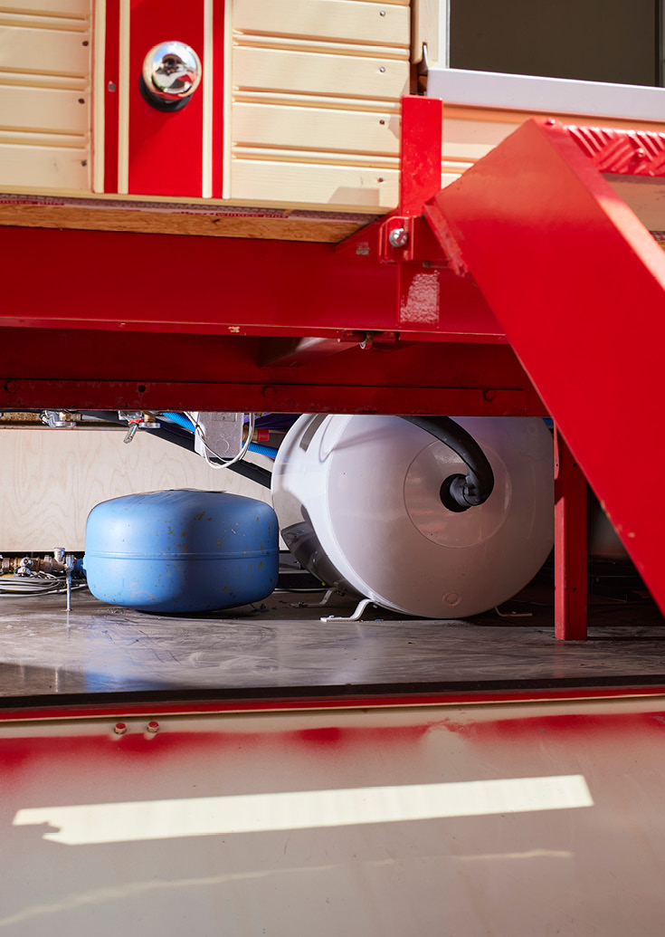 Directeur technique du cirque Mugg, Ischa Muggli s’est chargé des travaux de transformation du véhicule. Menuisier de formation et artiste, il sait parfaitement comment s’y prendre tant en termes de construction que de solutions créatives : « Nous devons faire face à d’autres défis dans nos projets de construction, mais nous profitons d’une plus large marge de manœuvre que la plupart des maîtres de l’ouvrage. Il n’existe, par exemple, aucune norme en matière de chauffage des roulottes de cirque. » Ischa Muggli a discuté de la planification et de la mise en œuvre des travaux avec l’installateur en chauffage, puis s’est attelé avec vigueur à la tâche, comme il est d’usage au cirque.