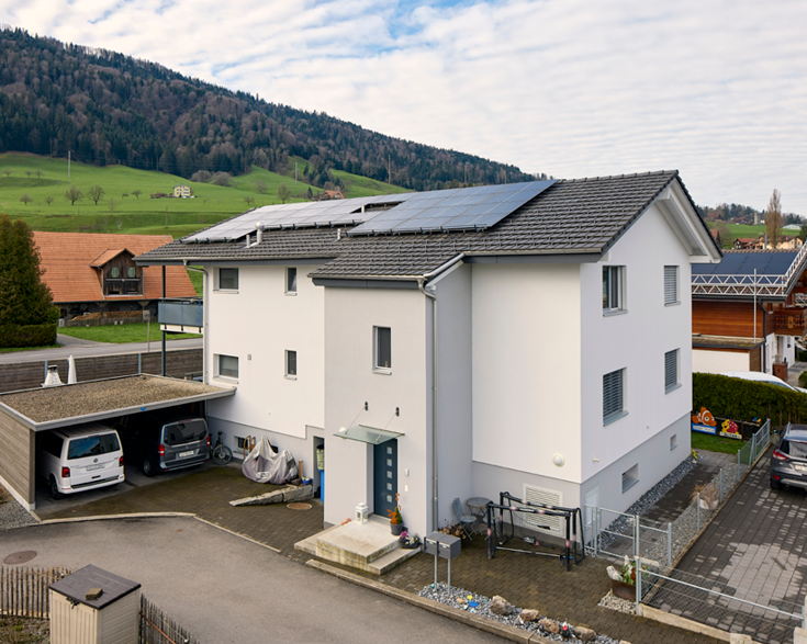 La production d’électricité et le chauffage sont de plus en plus liés. Il vaut donc la peine de combiner dès le départ électricité solaire et pompe à chaleur. Comme c’est le cas pour la construction neuve de la famille Elmer à Malters (LU).