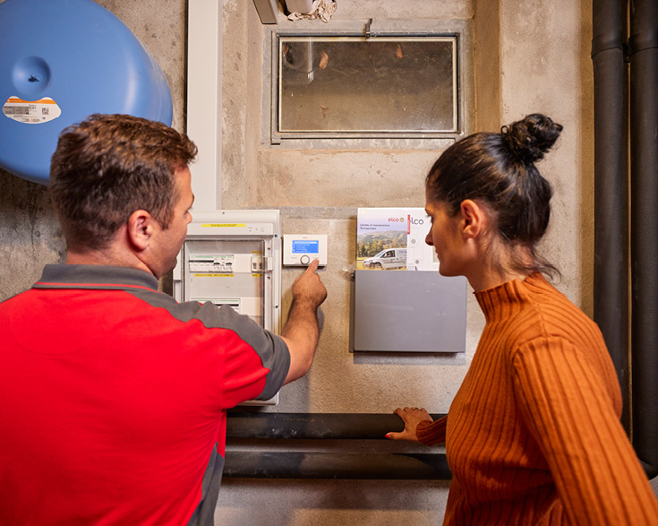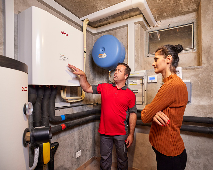 Après vingt minutes de marche sur les étroits chemins et entre des arbres et arbustes dégoulinants de pluie, Ljirigzon Selmani arrive chez la cliente. Il y a quelques mois, le bâtiment a connu un dégât des eaux qui a totalement détruit le chauffage électrique en place. Une nouvelle solution de chauffage très efficiente sur le plan énergétique, une pompe à chaleur air/eau ELCO AEROTOP SPLIT y a été installée il y a quelques semaines. C’est maintenant l’heure de la formation: «Pour que nos clientes et clients connaissent leur installation et puissent la réguler eux-mêmes si nécessaire, nous leur offrons une formation détaillée. Cette formation fait partie de notre service haut de gamme et a largement fait ses preuves», souligne Ljirigzon Selmani.