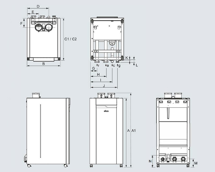 L'integrazione dei componenti principali all'interno della caldaia, come la pompa di circolazione e le valvole di ritegno, riduce notevolmente i tempi di installazione, i costi e lo spazio necessario. Tutti gli elementi importanti sono accessibili dal lato frontale della caldaia. Il pannello di controllo, posizionato nel campo visivo, agevola l'impostazione dei parametri, mentre l'ampia gamma di accessori semplifica l'installazione.