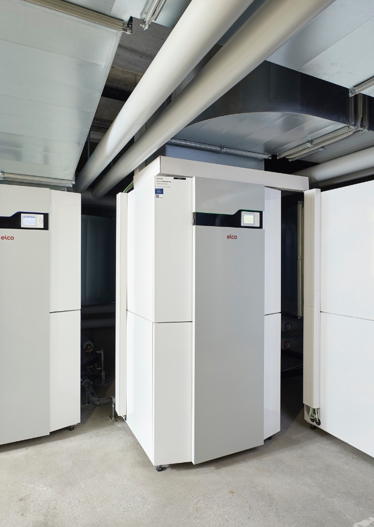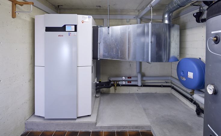 Le termopompe installate all'interno degli edifici richiedono un'infrastruttura progettata con cura. «Una macchina aspira ogni ora diverse migliaia di metri cubi di aria, preleva una parte del calore in essa contenuto e la espelle nuovamente. Si tratta di enormi quantità, per cui una buona conduzione dell'aria è fondamentale», afferma Thomas Stöckli, consulente di vendita alla ELCO. Per l'aspirazione e l'espulsione dell'aria si utilizzano idealmente dei pozzi luce o le aperture di porte e finestre. In alternativa si possono realizzare nuovi pozzetti o praticare aperture in muri esistenti. Come collegamento servono dei condotti per l'aria. Canali in lamiera di acciaio o tubi flessibili isolati convogliano l'aria dall'apertura di aspirazione fino alla termopompa e poi da lì fino all'apertura di espulsione.