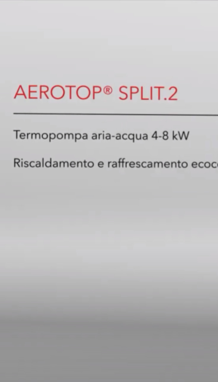 La nuova AEROTOP® SPLIT.2 combina il funzionamento a basso costo alla longevità. Questa è l’occasione giusta per beneficiare dei vantaggi della tecnologia delle termopompe a basso impatto ambientale. I separatori idraulici permettono un'interazione idraulica ottimale tra il circuito primario e il circuito riscaldamento. L'impianto può così essere adattato alle condizioni locali, sia per le nuove costruzioni, sia per i risanamenti