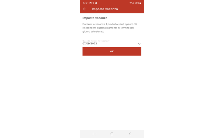 La modalità assenza è disponibile solo se per la zona è attiva la modalità automatica. Se la zona si trova in un’altra modalità e un utente tenta di programmare un’assenza, la app notifica tramite pop up che la zona verrà automaticamente commutata in modalità automatica. In questo modo si garantisce una corretta impostazione dell’assenza. Al termine o in caso di interruzione del periodo di assenza, la zona rimane in modalità automatica.