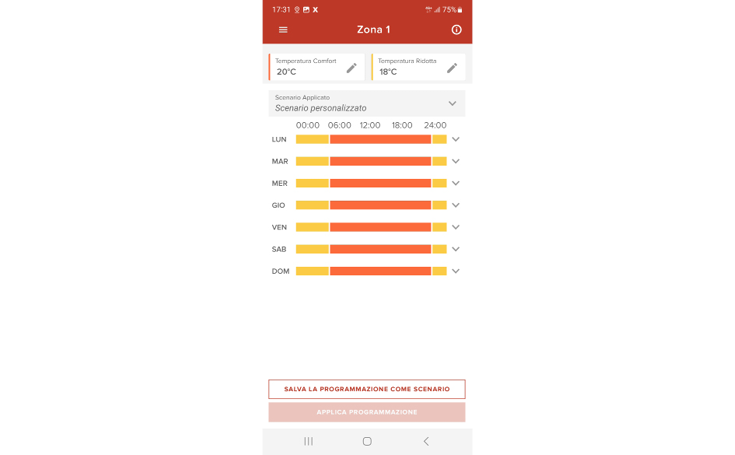 Se non si utilizza uno scenario preconfigurato o creato da un utente, sotto l’ultimo giorno della settimana appare l’opzione «Salva come scenario».